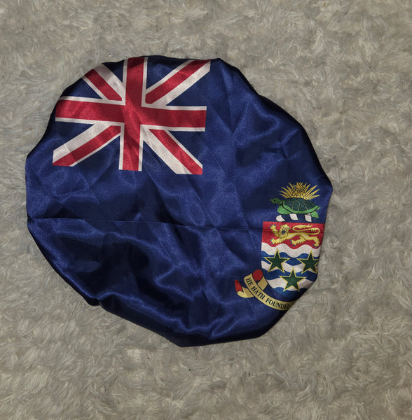 Satin Bonnet of the Cayman Islands flag. Medium and Large center sizes are ready to ship. Remaining sizes and patterns are made to order which will take 8 to 15 business days to process before shipping.